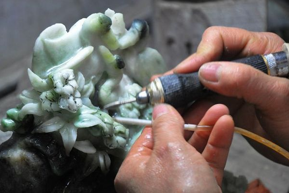 琢玉分開料、設(shè)計(jì)、水作、拋光四大工藝流程。